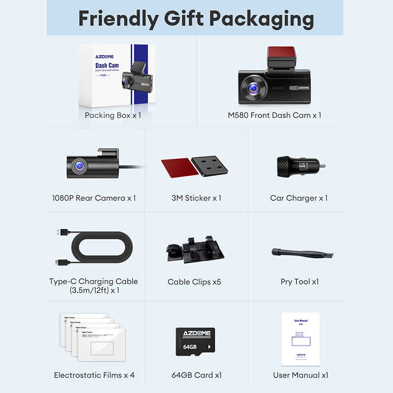 • Warranty: AZDOME M580 provides 12 months warranty and 24*7 technical supports. Please email us when you facing to any problems with aftersales service. AZDOME R&D team will try our best to feedback within 24 hours working days.