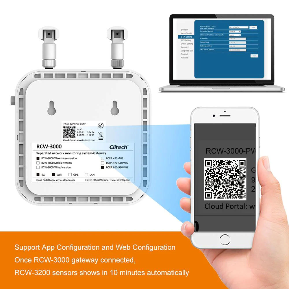 The RCW-3000 split network monitoring system adopts LoRa, 4G, Wifi, Ethernet and other communication transmission technologies. It is composed of wireless data collectors, gateways, cloud platforms, mobile APPs, etc. The wireless data collector can be deployed arbitrarily according to the monitoring location. The gateway is capable to upload data through 4GWifi Ethernet and other methods of communication. With the cloud platform and APP, it can realize remote data viewing, historical data query, remote alarm push notification and other functions. RCW-3000 split network monitoring system is widely used in large-scale cold storage, shade storage, hospitals, fresh supermarkets, etc. RCW-3000 gateway is supporting use with RCW-3200 sensors. Either of them cannot be used alone.