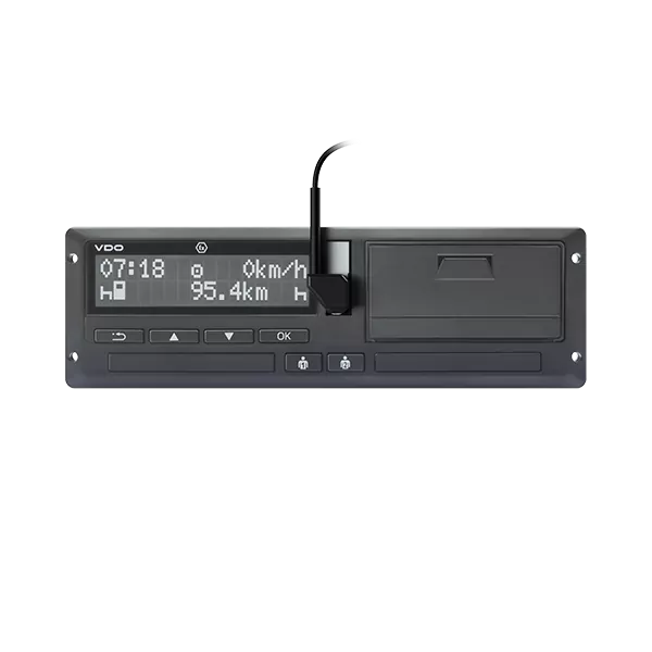 Easily connect to Front Panel Interface of VDO Tachograph to receive Tachograph files and live data remotely. Both 12V and 24V tachographs are supported with the accessory!