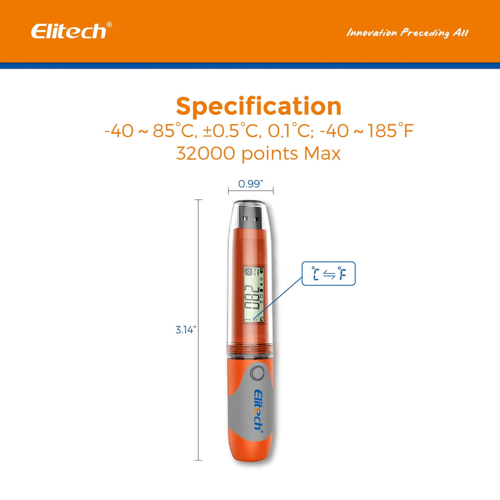 The Elitech RC-51 Waterproof USB Temperature Datalogger is ideal for cold chain monitoring applications that require a highly responsive data logger. All Elitech Waterproof USB Temperature Data loggers are robust due to their transparent waterproof PC casing. Every part is subjected to strict quality inspection as per the FDA & CE standards. The pen-style design also features multiple temperature zone statistics and multiple options of time zones, which makes it adaptable and therefore a versatile piece of equipment in all industries. A compact design, multiple starts and stops, and one-button operation make it easy to use. This data logger also features a replaceable battery, a unique MKT algorithm, and a one-button operation.