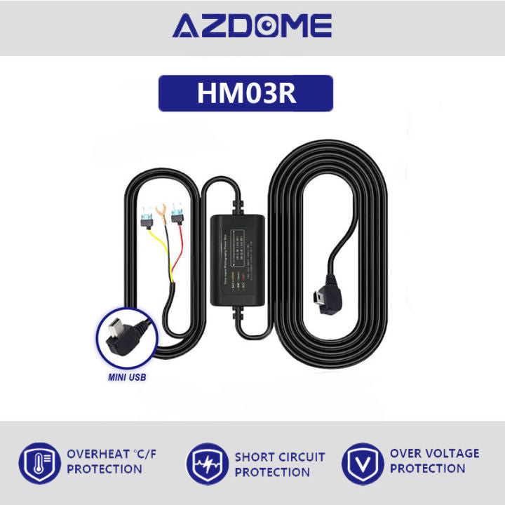 AZDOME HM03R Car DVR HardWire Kit For M550/AR09 Low Vol Protection Mini USB Port 12V-24V in 5V3A Out