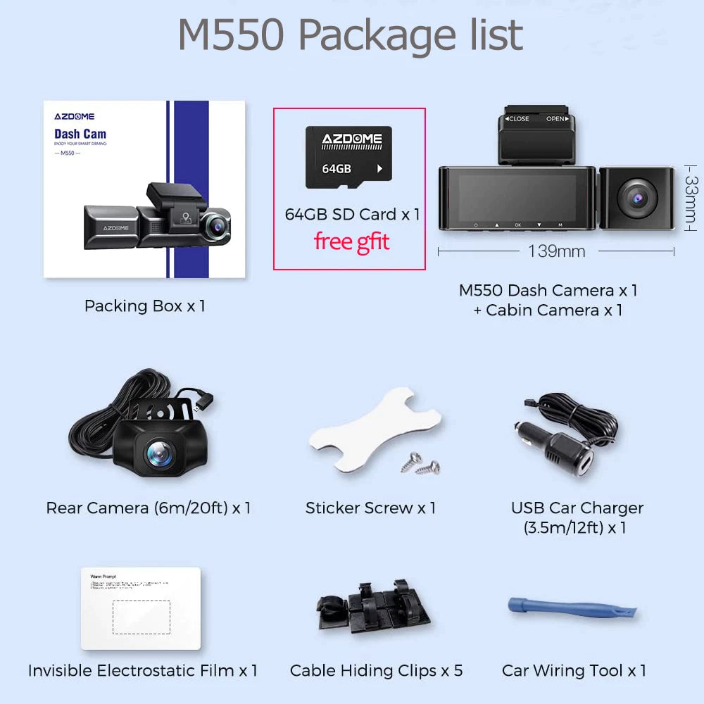 Drive safe with the new GPS-enabled AZDOME 3-channel dash cam in your car!