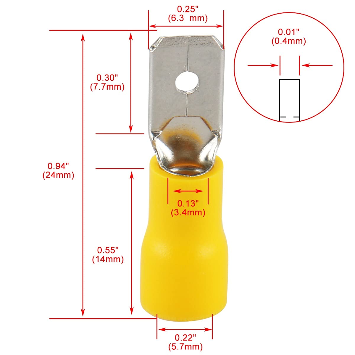 Male Spade Quick Splice Crimp Terminals 0.3 inch 6.3mm Crimp Connector Non Insulated Pack of 100
