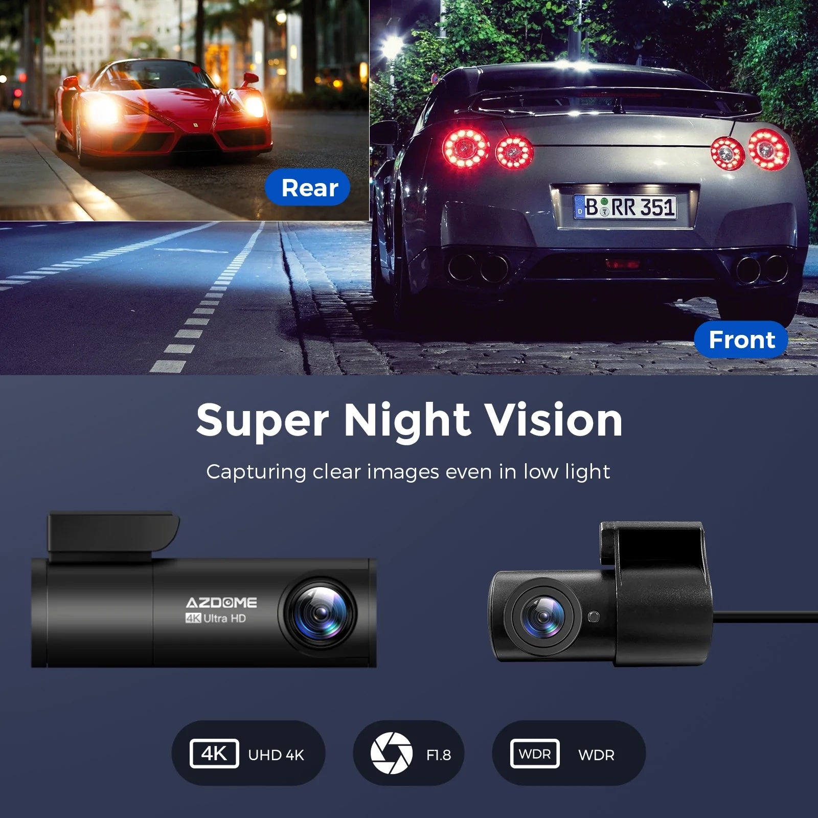 The M300S is equipped with front and rear cameras, which can record at the same time. The front camera supports 4K resolution and can capture road information very clearly.